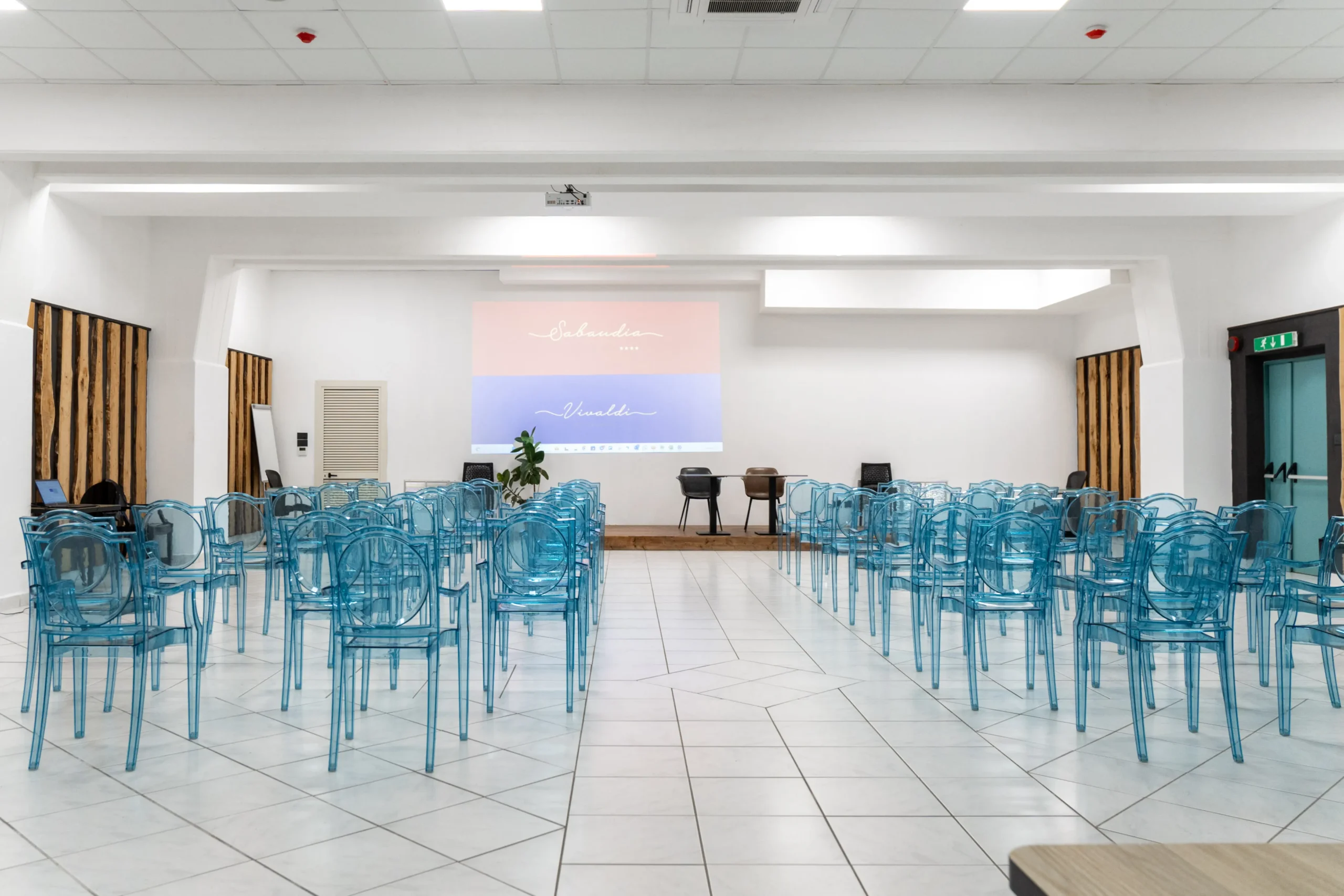 The hall is set within the 4-star “Sabaudia Hotel”, equipped with an outdoor pool, sauna, wellness path and an elegant restaurant. All while maintaining confidentiality and exclusivity for the corporate event.